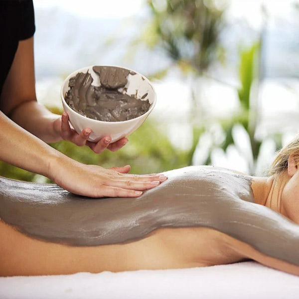 * Aplicación de fango termal que brinda calor para favorecer la eliminación de toxinas y así dar un aspecto más firme a la piel.